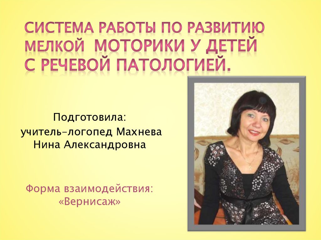 Развитие мелкой моторики у детей с речевой патологией. Форма взаимодействия: «Вернисаж»
