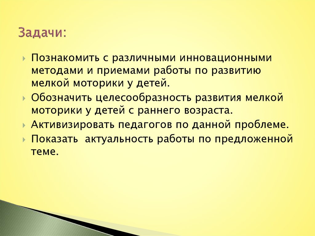 Познакомить с различными инновационнымиметодами и приемами работы по развитию