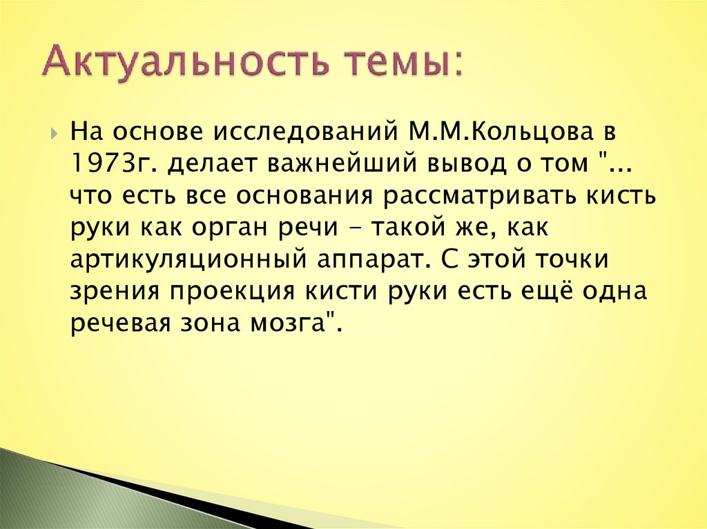 На основе исследований М.М.Кольцова в1973г. делает важнейший вывод о том "...