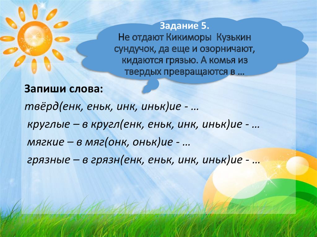 круглые – в кругл(енк, еньк, инк, иньк)ие - …