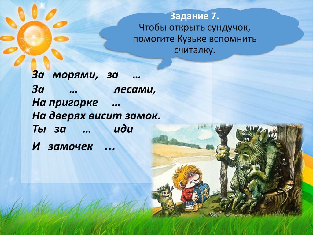 2. Дорогие ребята! Всем вам известен сказочный герой Кузька. Выполнив все задания, вы сможете разгадать тайну заветного сундучка,