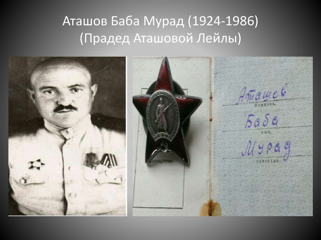 Аташов Баба Мурад (1924-1986)(Прадед Аташовой Лейлы)