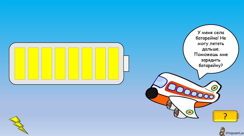 *Когда батарейка заряжена, последний раз нажимаю на молнию, самолетик летит.