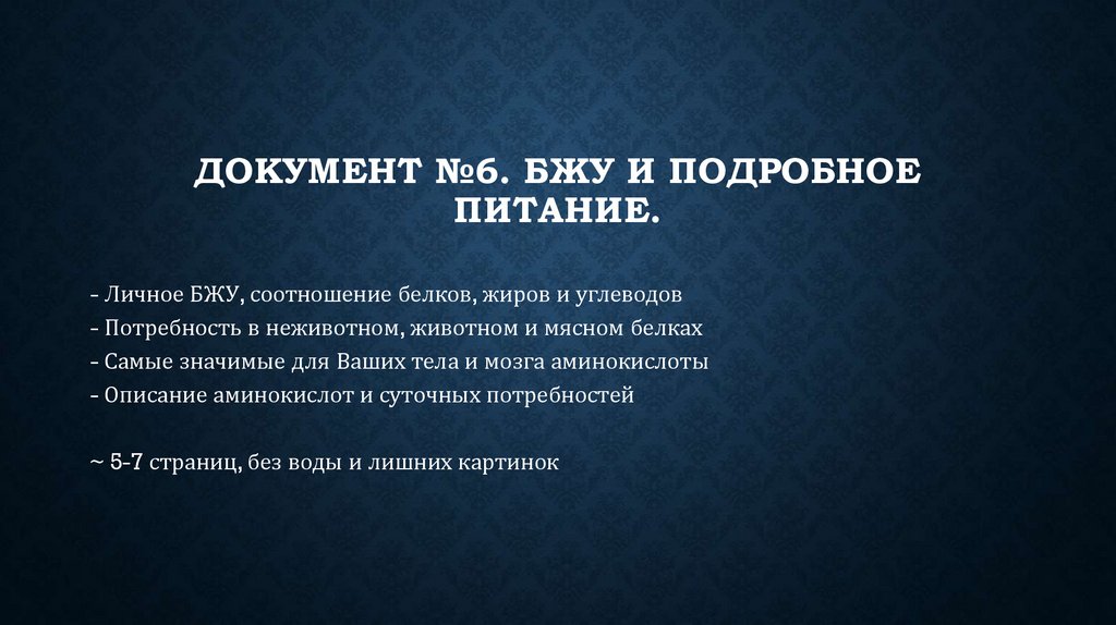 7. Документ №6 (БЖУ и подробное питание) – 2000р