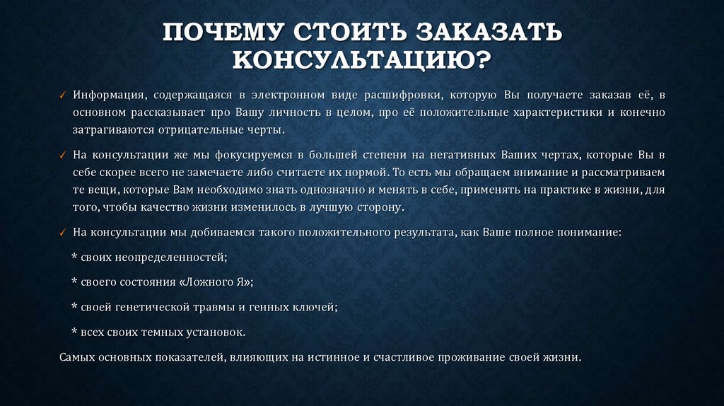ПОЧЕМУ СТОИТЬ ЗАКАЗАТЬКОНСУЛЬТАЦИЮ?