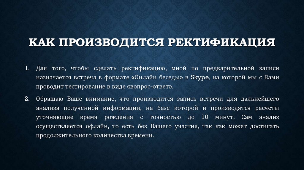 КАК ПРОИЗВОДИТСЯ РЕКТИФИКАЦИЯ1. Для того, чтобы сделать ректификацию, мной по предварительной записи