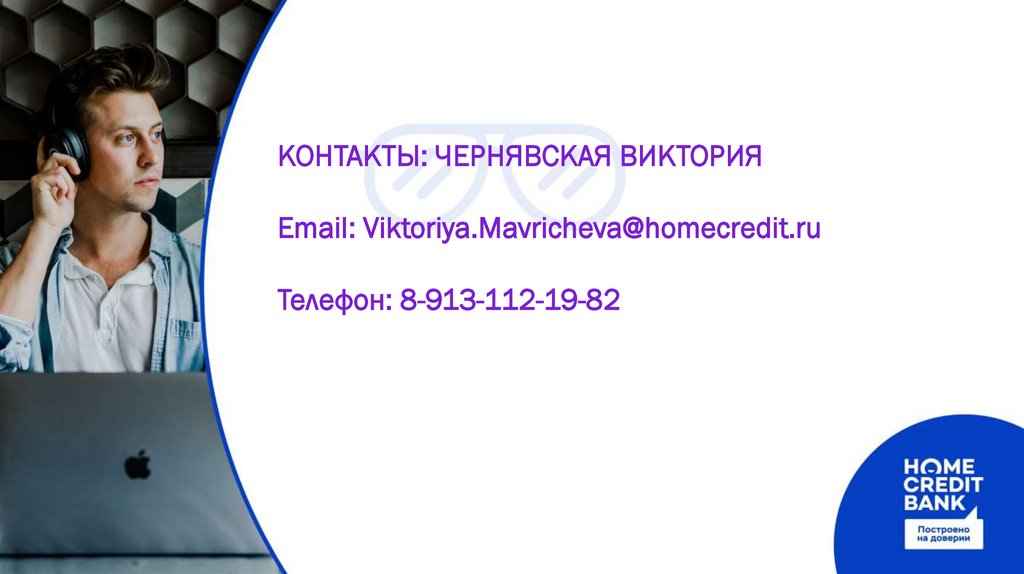 КОНТАКТЫ: ЧЕРНЯВСКАЯ ВИКТОРИЯEmail: Viktoriya.Mavricheva@homecredit.ru