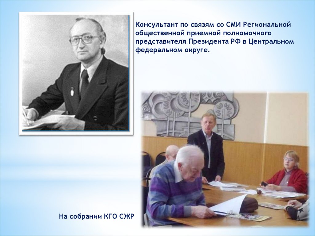 Консультант по связям со СМИ Региональнойобщественной приемной полномочного