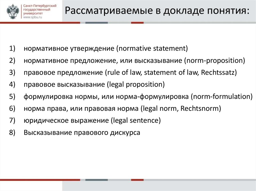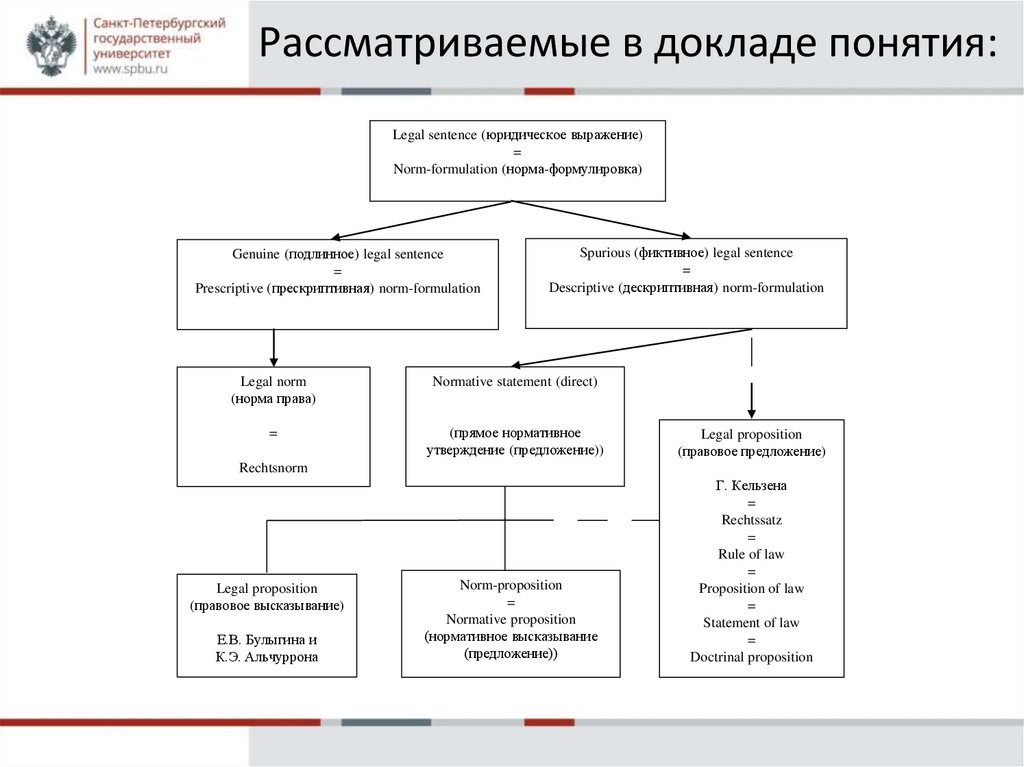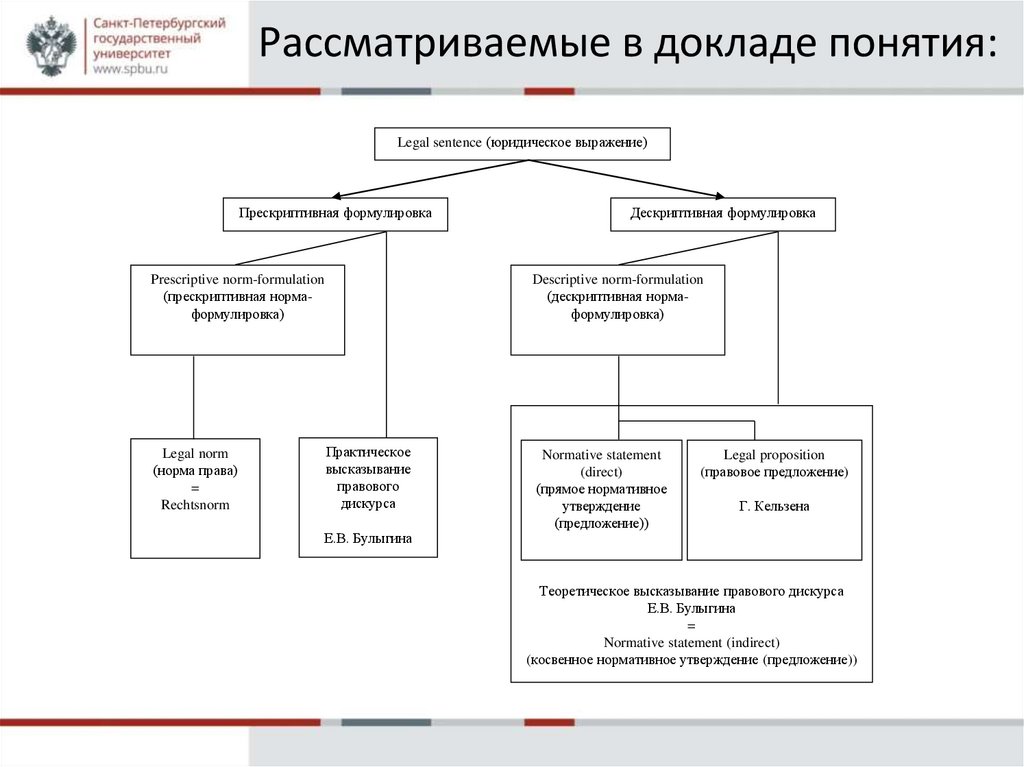 Рассматриваемые в докладе понятия:Legal sentence (юридическое выражение)