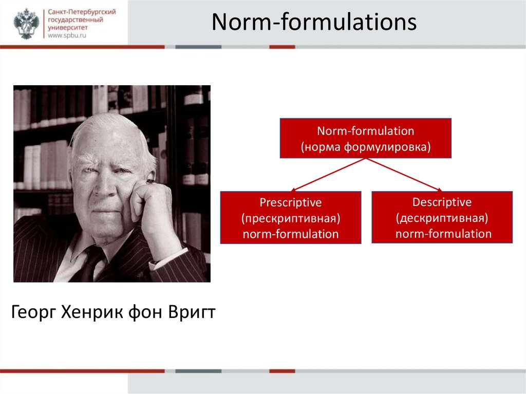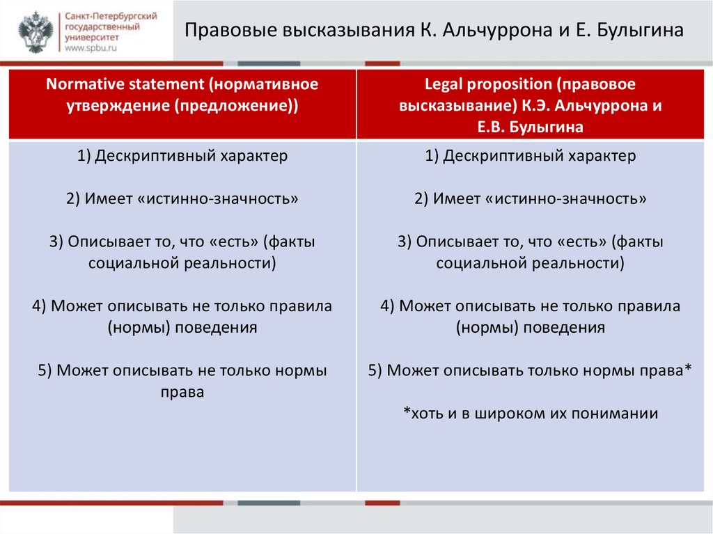 Правовые высказывания К. Альчуррона и Е. БулыгинаDescriptive norm-formulation