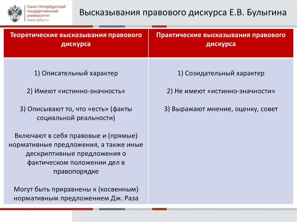 Высказывания правового дискурса Е.В. БулыгинаТеоретические высказывания правового