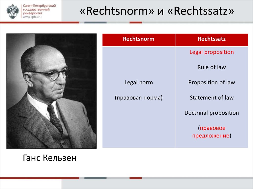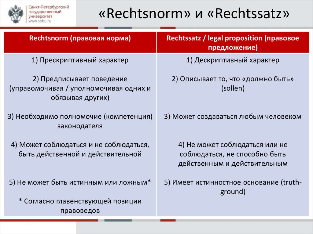 «Rechtsnorm» и «Rechtssatz»Rechtsnorm (правовая норма)