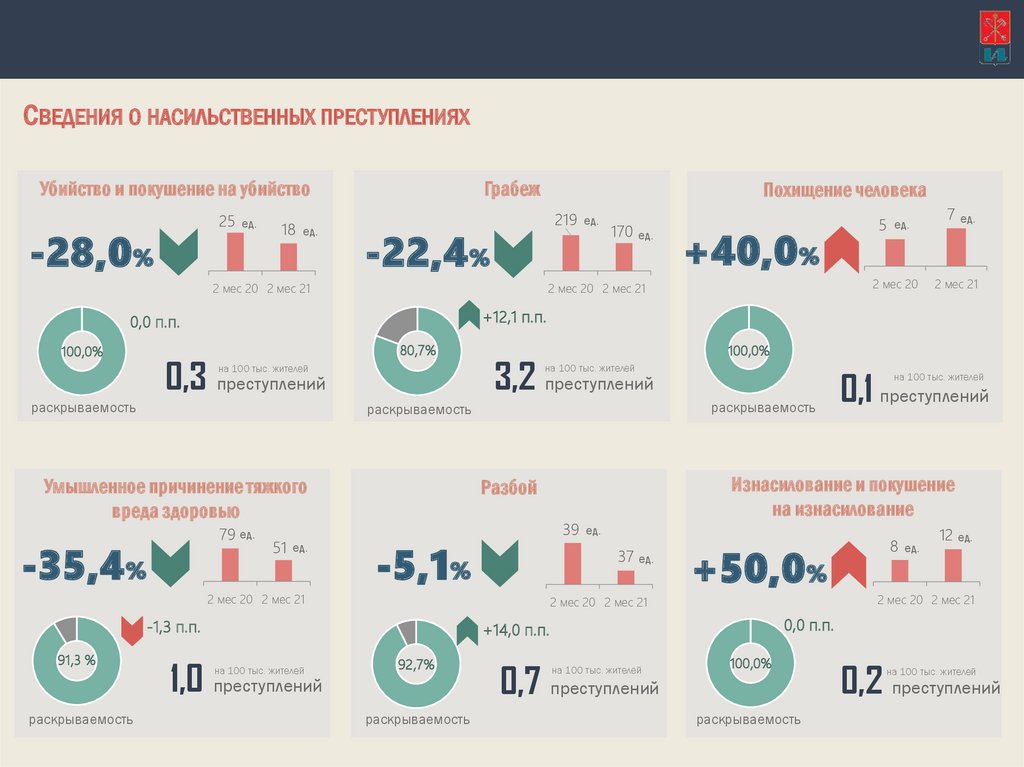 отмечается снижение числа совершённых грабежей и разбоев (на 22,4% и 5,1% соответственно).