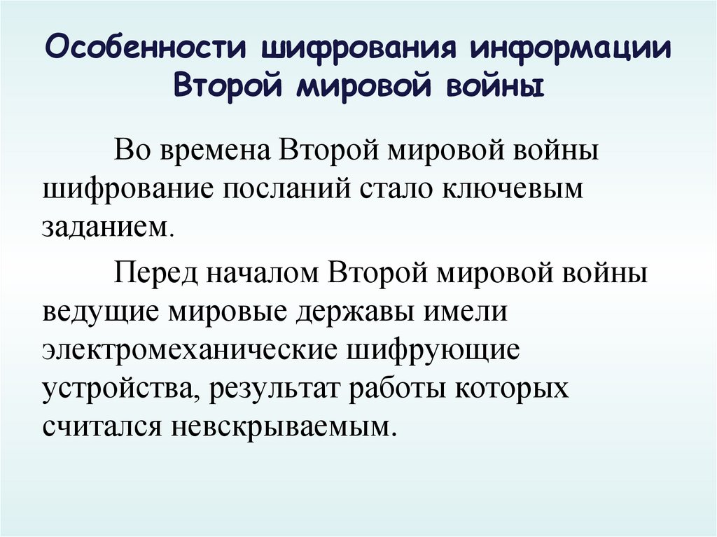 Особенности шифрования информацииВторой мировой войны