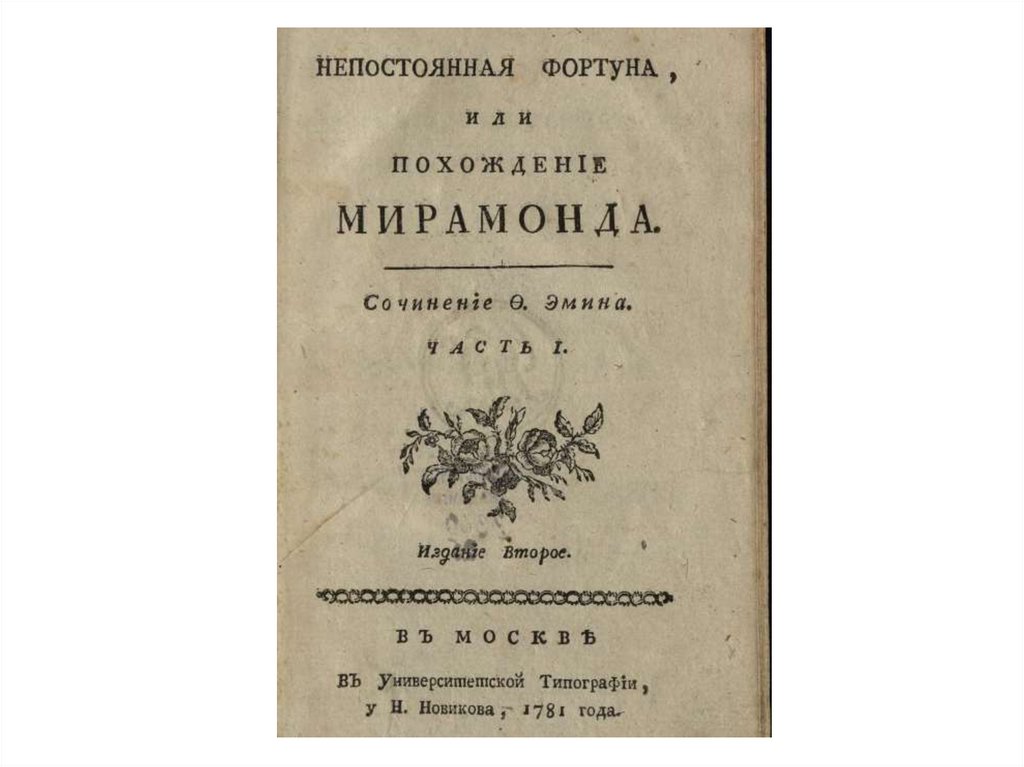 Ф.А. Эмин "Непостоянная фортуна или похождение Мирамонда"