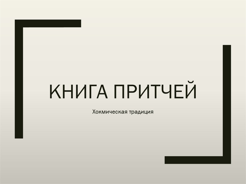 КНИГА ПРИТЧЕЙХокмическая традиция