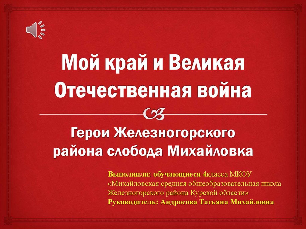 Великая Отечественная война. Герои Железногорского района слобода Михайловка