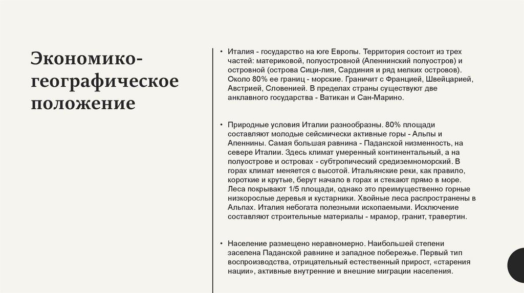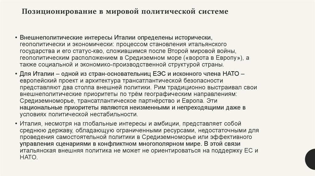 • Италия, несмотря на глобальные интересы и амбиции, представляет собой