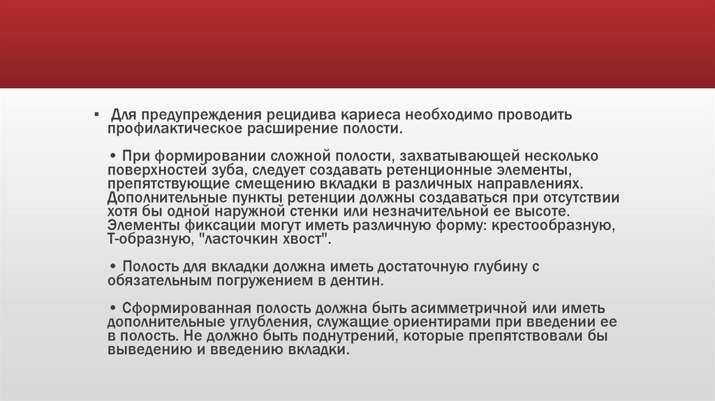 ▪ Для предупреждения рецидива кариеса необходимо проводитьпрофилактическое расширение полости.