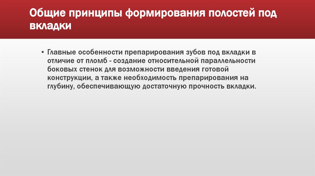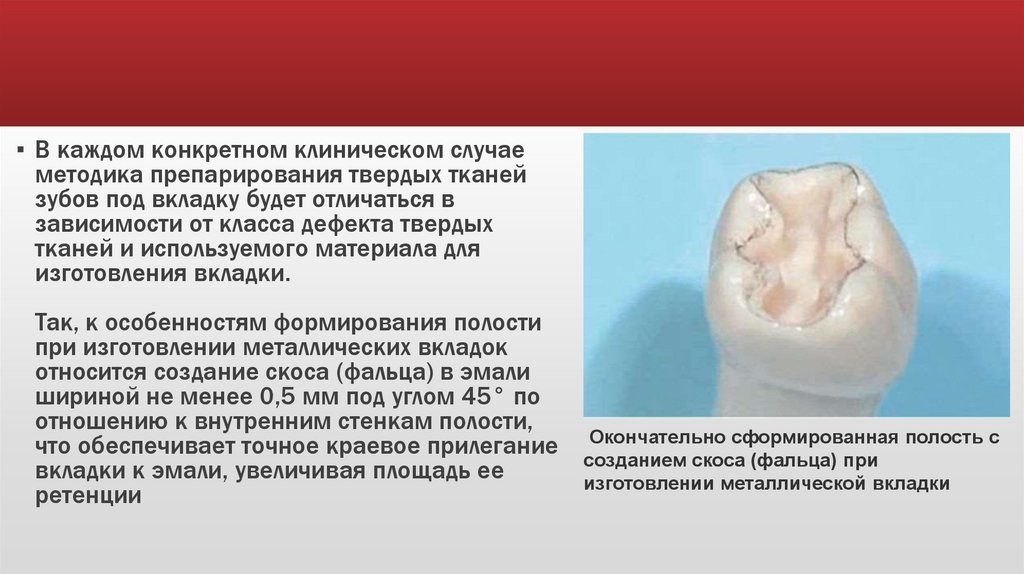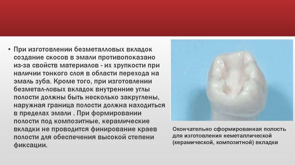 Для обеспечения надежной фиксации вкладки при условии сохраненияустойчивых к жевательному давлению краев полости и для