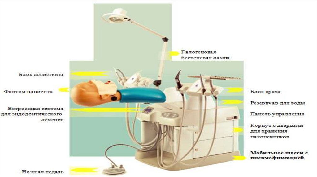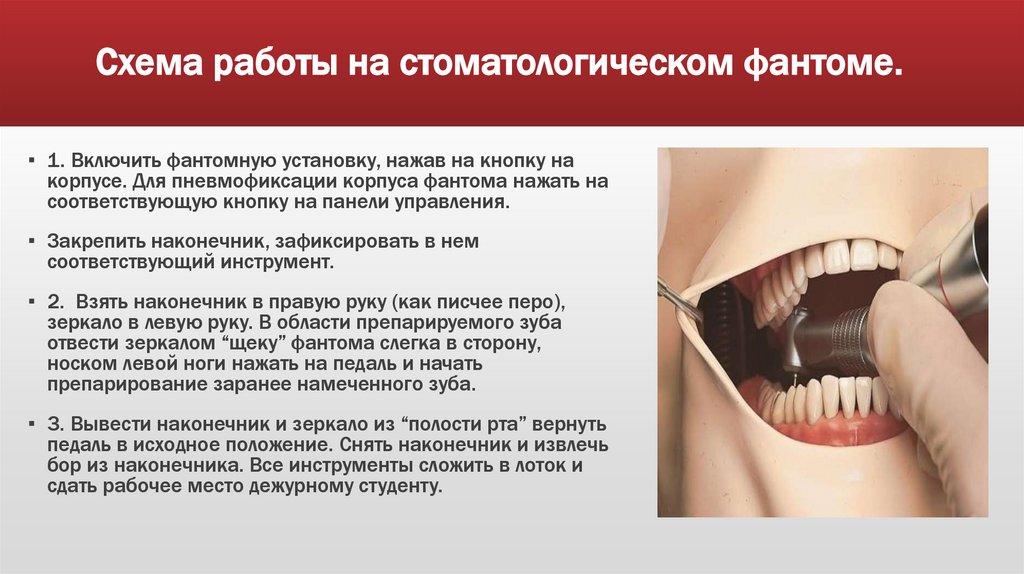 Схема работы на стоматологическом фантоме.▪ 1. Включить фантомную установку, нажав на кнопку на