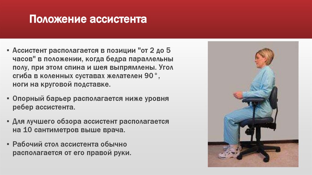 Положение ассистента▪ Ассистент располагается в позиции "от 2 до 5