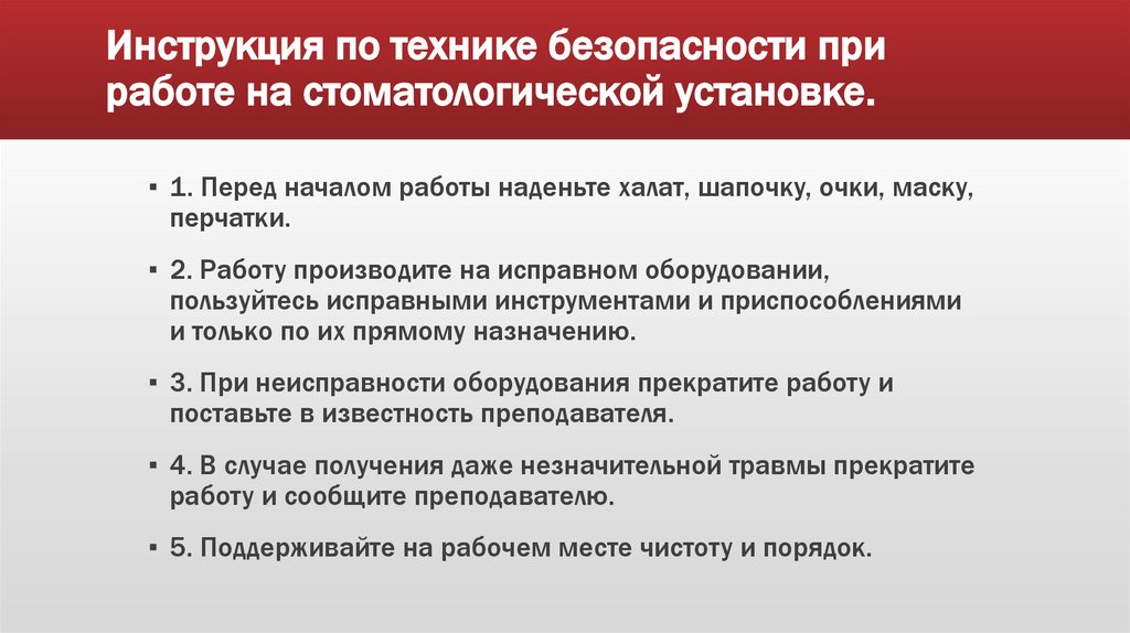 Инструкция по технике безопасности приработе на стоматологической установке.