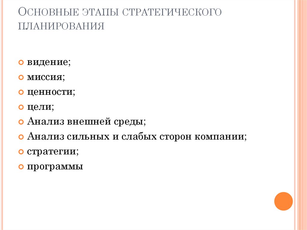 ОСНОВНЫЕ ЭТАПЫ СТРАТЕГИЧЕСКОГОПЛАНИРОВАНИЯ