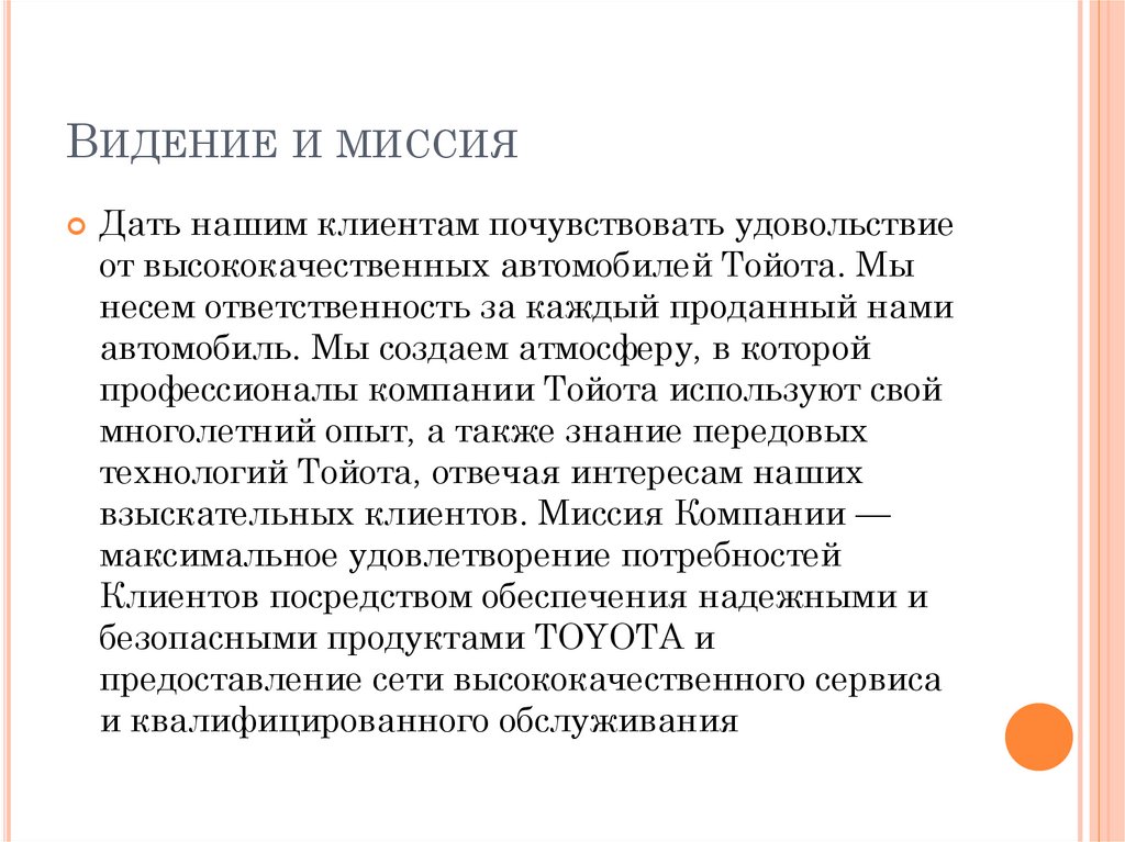 ВИДЕНИЕ И МИССИЯДать нашим клиентам почувствовать удовольствие