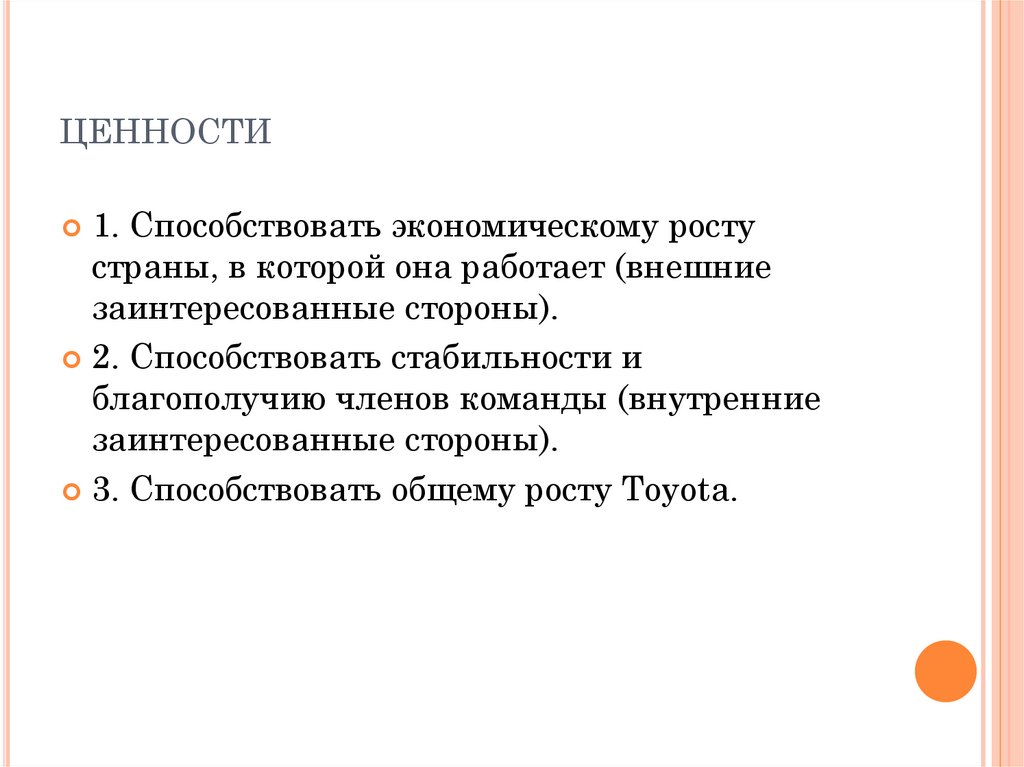 ЦЕННОСТИ1. Способствовать экономическому росту