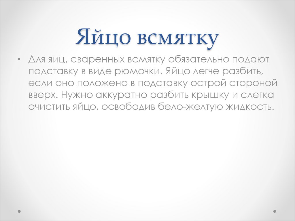 Яйцо всмятку• Для яиц, сваренных всмятку обязательно подают