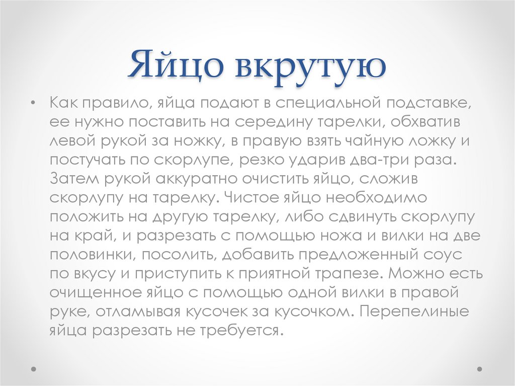 Яйцо вкрутую• Как правило, яйца подают в специальной подставке,
