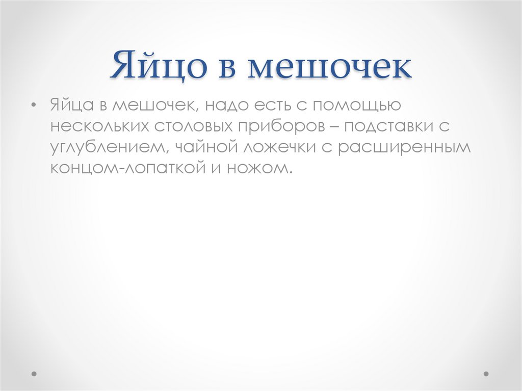 Яйцо в мешочек• Яйца в мешочек, надо есть с помощью