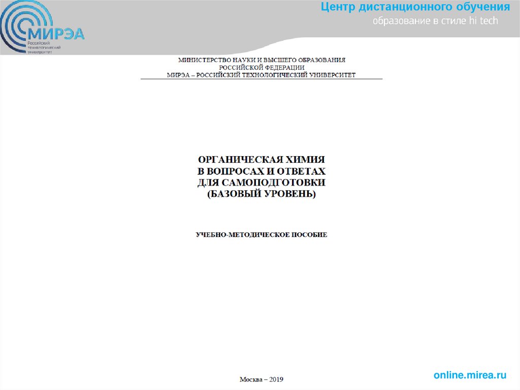 Центр дистанционного обученияОрганическая химия