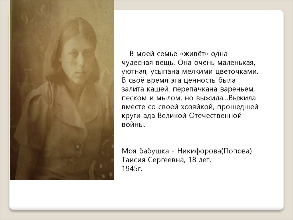 В моей семье «живёт» одначудесная вещь. Она очень маленькая,