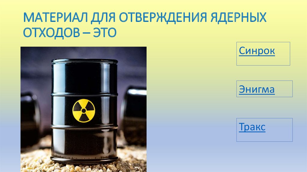 МАТЕРИАЛ ДЛЯ ОТВЕРЖДЕНИЯ ЯДЕРНЫХОТХОДОВ – ЭТО