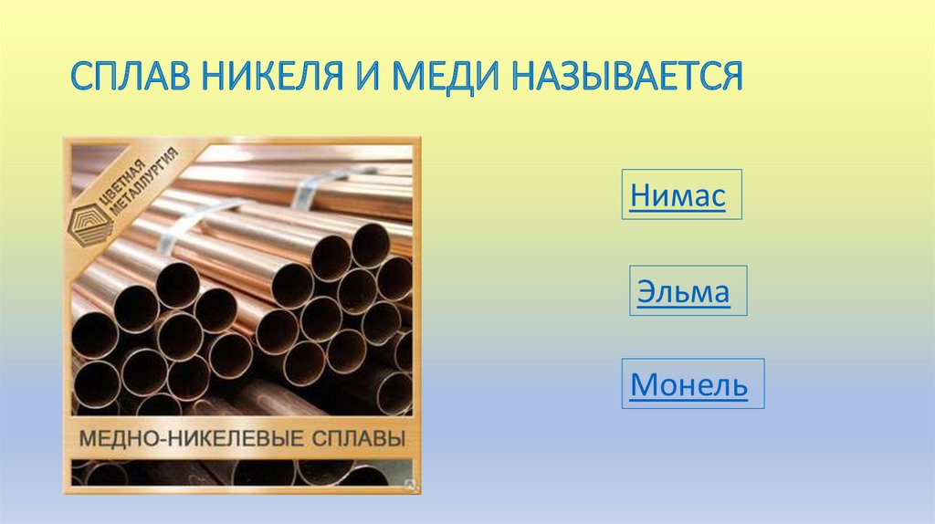 СПЛАВ НИКЕЛЯ И МЕДИ НАЗЫВАЕТСЯНимас