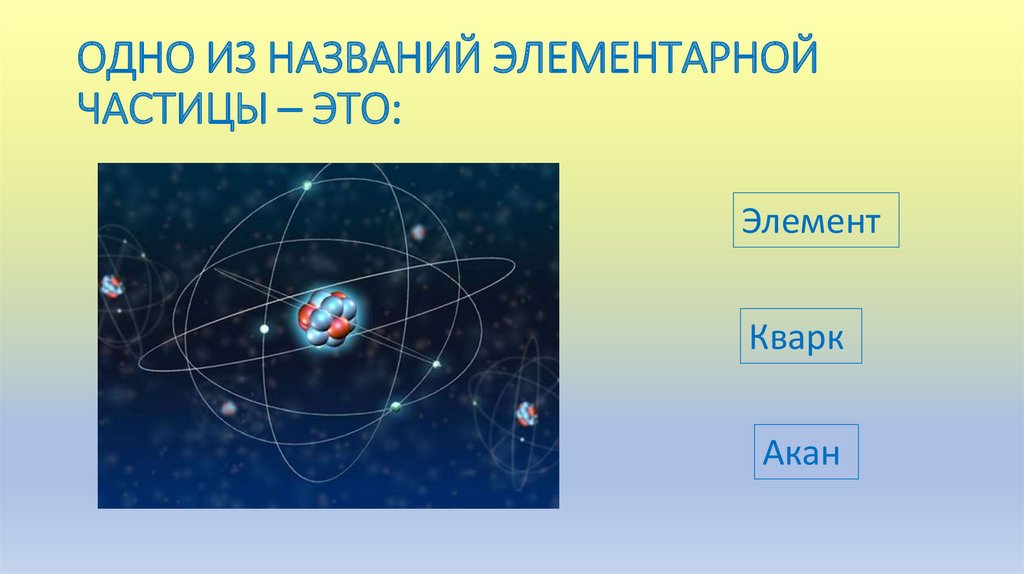 ОДНО ИЗ НАЗВАНИЙ ЭЛЕМЕНТАРНОЙЧАСТИЦЫ – ЭТО: