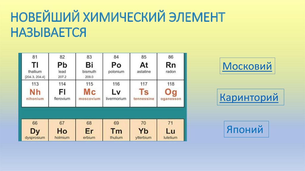 НОВЕЙШИЙ ХИМИЧЕСКИЙ ЭЛЕМЕНТНАЗЫВАЕТСЯ