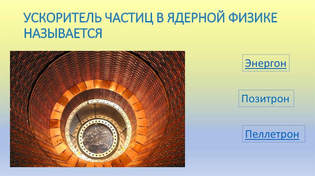 УСКОРИТЕЛЬ ЧАСТИЦ В ЯДЕРНОЙ ФИЗИКЕНАЗЫВАЕТСЯ