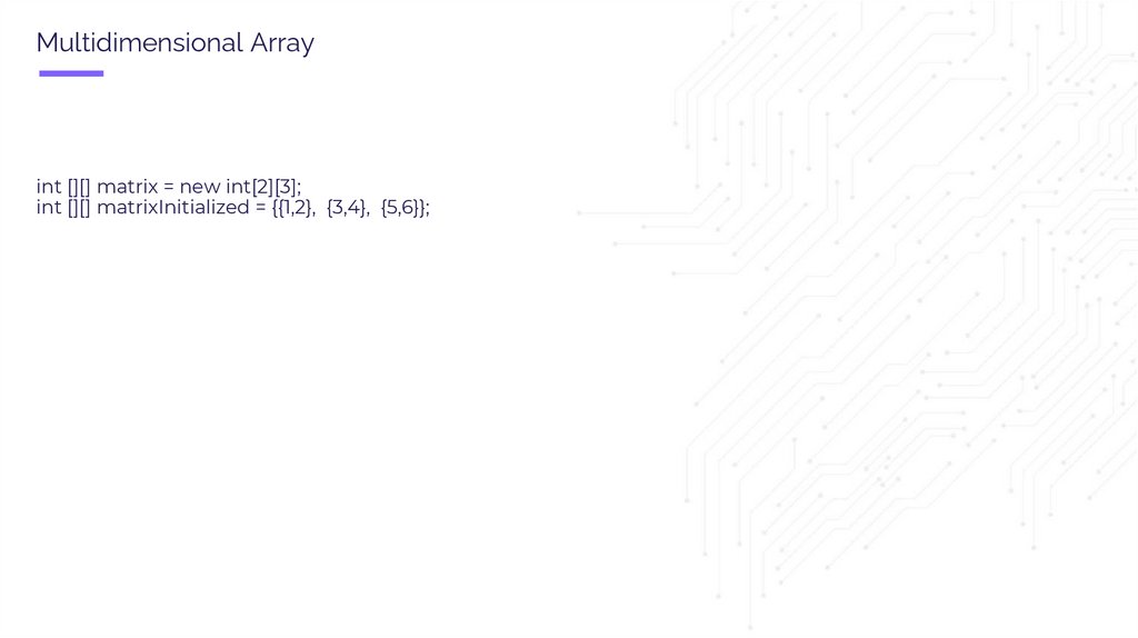 Multidimensional Arrayint [][] matrix = new int[2][3];