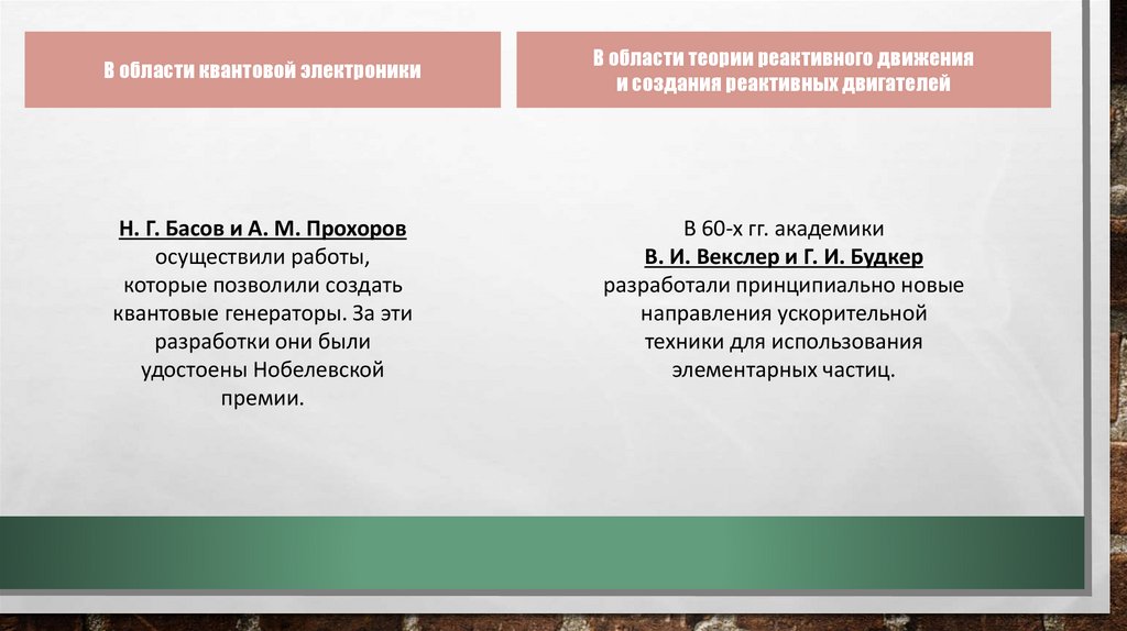 В области квантовой электроникиН. Г. Басов и А. М. Прохоров