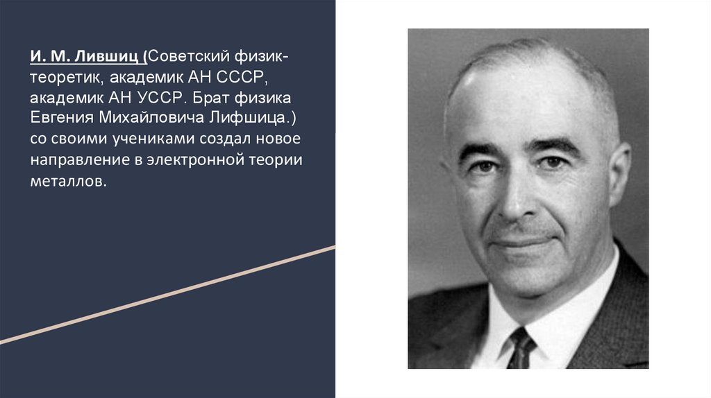 И. М. Лившиц (Советский физиктеоретик, академик АН СССР,академик АН УССР. Брат физика