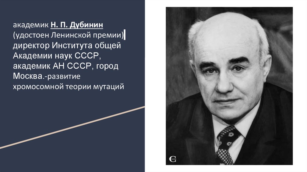 академик Н. П. Дубинин(удостоен Ленинской премии)