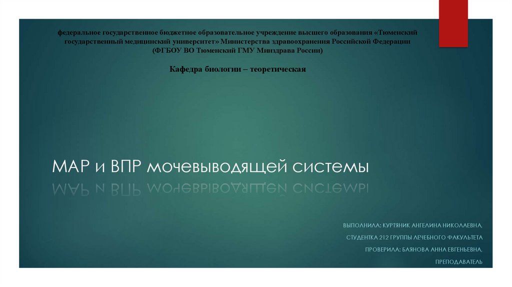 федеральное государственное бюджетное образовательное учреждение высшего образования «Тюменскийгосударственный медицинский университет» Министерства здравоохранения Российской Федерации