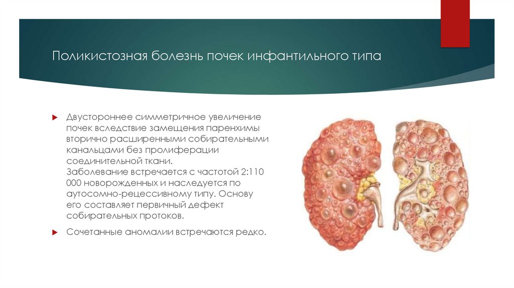 Поликистозная болезнь почек инфантильного типаДвустороннее симметричное увеличение