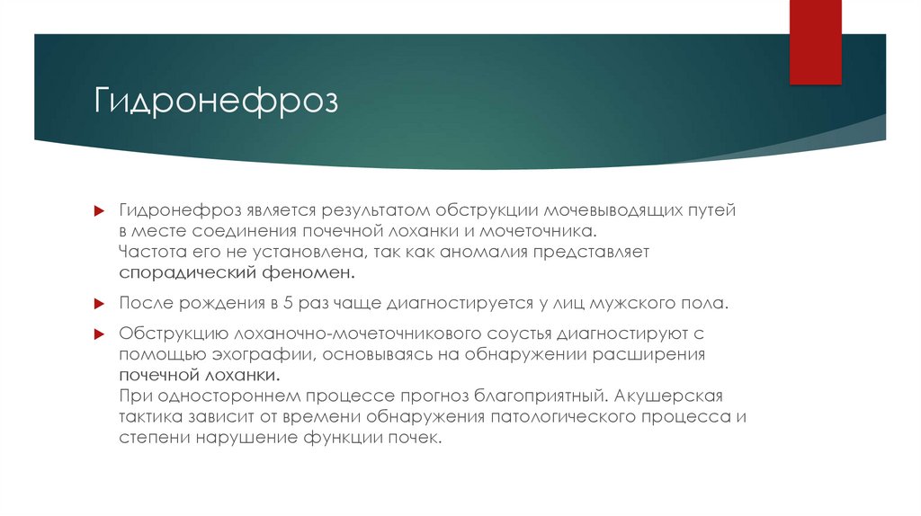 ГидронефрозГидронефроз является результатом обструкции мочевыводящих путей