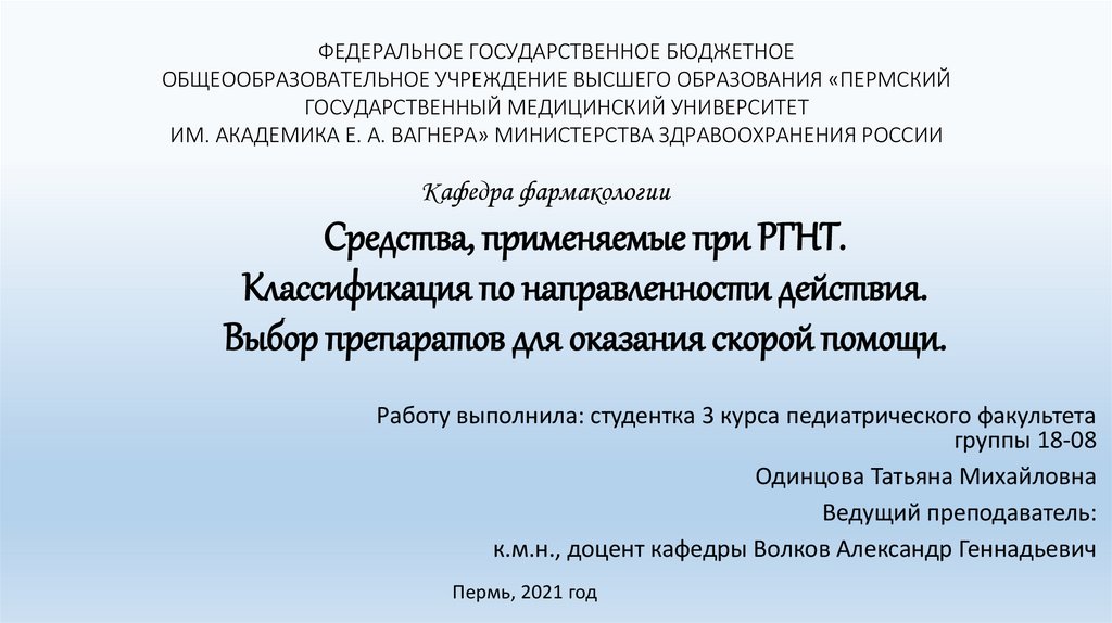 ИМ. АКАДЕМИКА Е. А. ВАГНЕРА» МИНИСТЕРСТВА ЗДРАВООХРАНЕНИЯ РОССИИ
