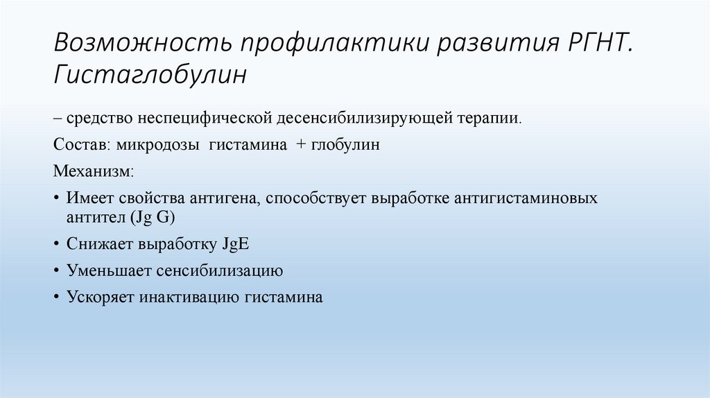 Возможность профилактики развития РГНТ.Гистаглобулин