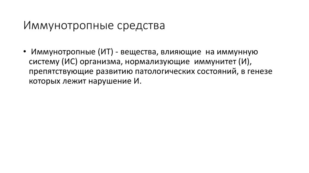 Иммунотропные средства• Иммунотропные (ИТ) - вещества, влияющие на иммунную